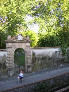 我們租的這間公寓位坐落在運河畔,長長一排老屋的邊間,這排房子建在盧卡的第一道城牆的遺址上。公寓所在的這幢樓房,原是大戶人家的『宅邸』(Palazzo),如今被分隔成公寓單位,一樓一戶,我們住的這一戶是邊間,夾在兩條馬路之間,大門對著短短的巷道,門口一左一右的小階梯通往兩側的道路。進得大門,左側是住戶的信箱,右邊是樓梯,拾步上樓,轉個大彎,就到了我們在盧卡的『住家』。
