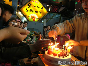 對於韓國人的嗜酒成性,我到韓國後才算是真正大開眼界。除了路邊醉漢隨處可見之外,由於春天正值開學、新生歡迎會舉行的旺季(註:韓國學制是春天三月開學),所以當時每到晚上常可看到一群群大學生聚集在路邊,討論著要上哪家啤酒屋喝酒去,而通常韓國校園周邊開最多的店也不是書店,而是啤酒屋,可說是越晚越熱鬧!那段時間我常動不動就看到女生或男生醉到不醒人事,需要旁人攙扶才能走路,特別是他們多數是剛從高中生變成大學生的小大一,所以一開始看著那種景象的我始終覺得詭異,很想說句:『有必要喝成這樣嗎?』