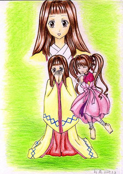 這樣的決心在「窮奇篇」及「風音篇」內刻劃得較為鮮明、動人(大概因為不知道結局吧!),而「天狐篇」讓我感到訝異的卻是昌浩對爺爺的那分不捨、心痛。在前兩篇中,晴明一直扮演著法術高超、對人和藹的(雙面)爺爺,常令昌浩又愛又恨,誰也沒想到那樣無助的孩子竟然誓死也要挽回爺爺,相較於之前想保護愛情、友情的決心,這次是親情。
