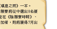 ─本文摘自結城光流《少年陰陽師(拾柒)真相之聲》.已經出版! |