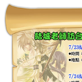 各位陰陽生好!一開始的掌聲是歡迎結城光流老師首度訪台!因為老師搭7月22日一早的班機,中午抵台,陰陽寮的副頭子和日文呱呱叫的陰陽「外」編會特地去接機,然後就開始這四天三夜的愉快行程啦!陰陽小編下午也會跟老師見面,好興奮哦!也就是在星期四下午,將請老師從慶生徵圖的十名佳作中,親自評選出三名優勝賞∼