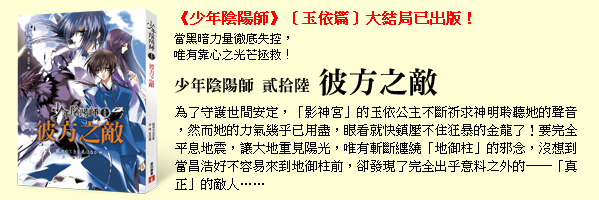 還有還有,少年陰陽師最新單元〔颯峰篇〕第一集《狂風之劍》書稿看完囉(小怪跟昌浩的鬥嘴還是這麼可愛啊)!新單元贈品規劃中……陰陽生有想要什麼樣的隨書或預購贈品嗎?(小聲偷問)